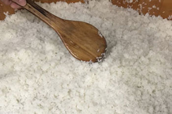 お米の分量や水加減は、一合づつ米を炊いて食べてみて割合を決めていきます。