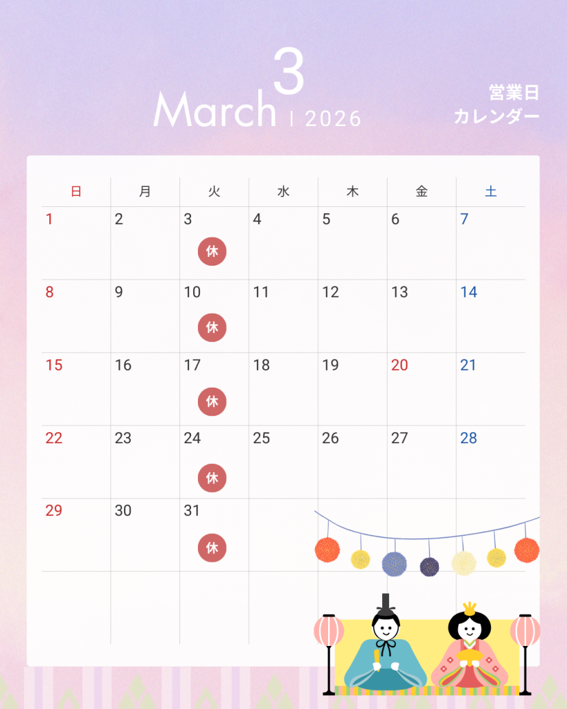 3月の営業日について