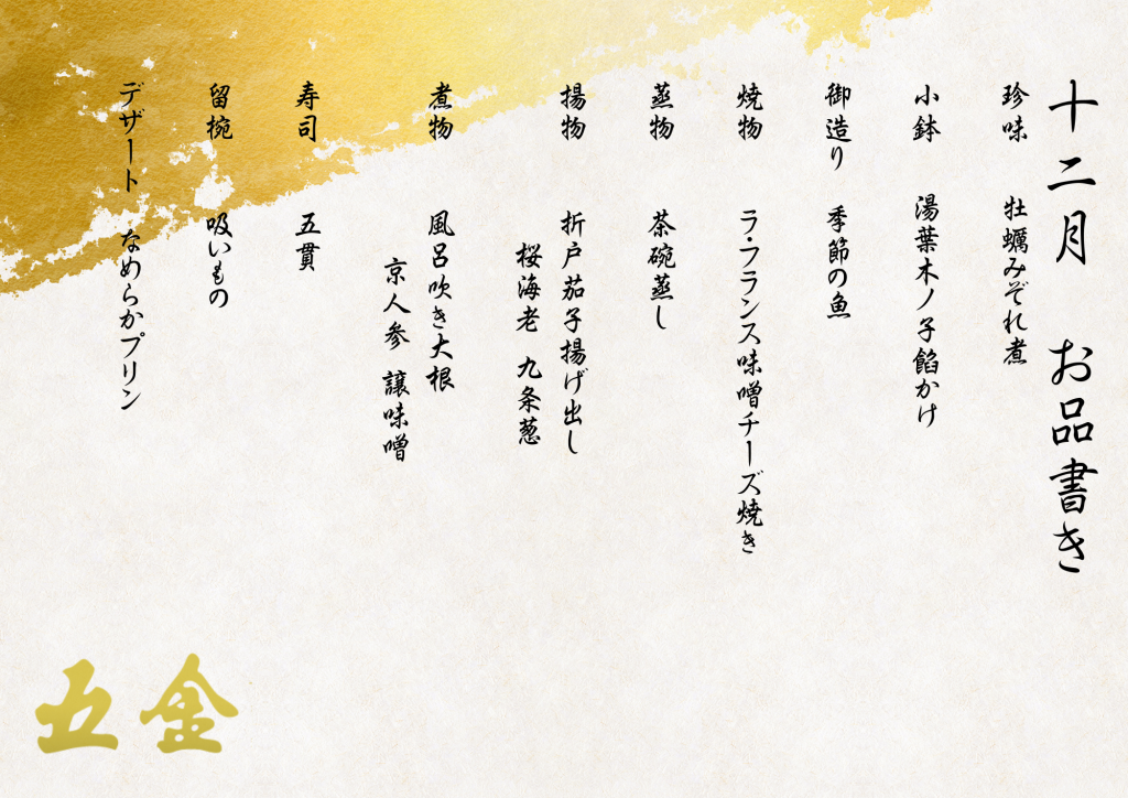 5,000円コースは、品数が少なく料理のボリュームが減る内容となります。