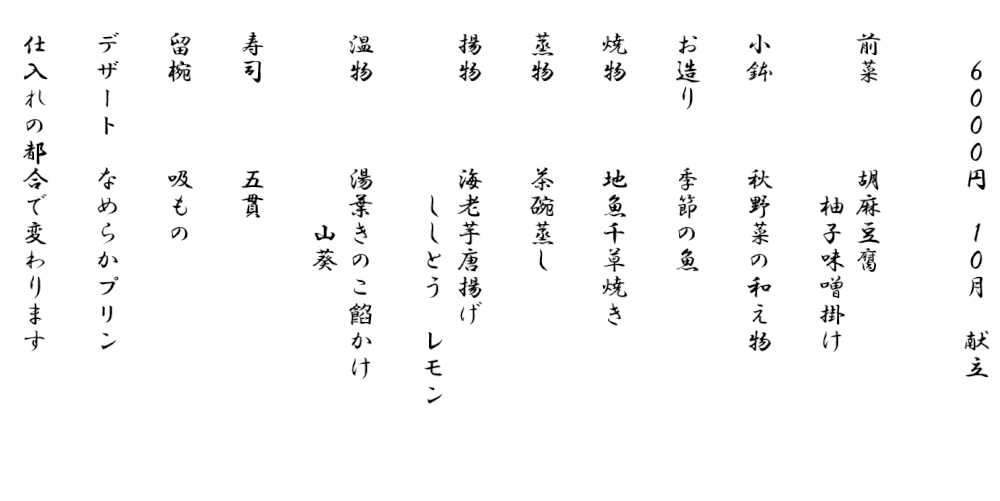 ※5000円コースは二品少なくなり寿司ネタが変わります。