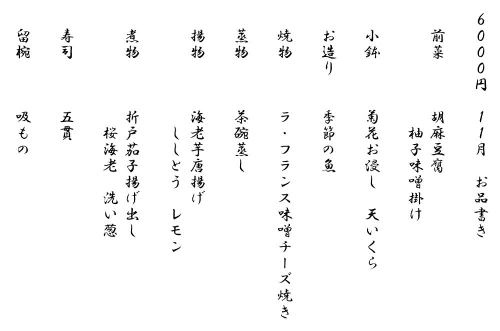 ※5000円コースは二品少なくなり寿司ネタが変わります。